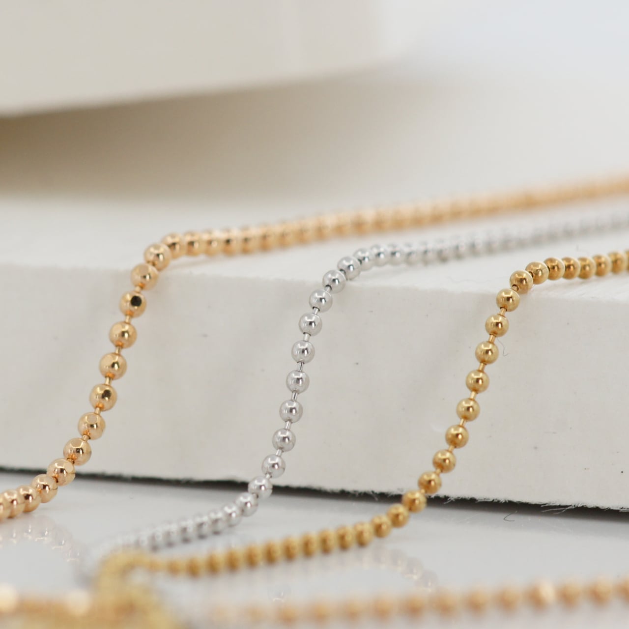 ※4,5枚目は同じく特価で販売中のボールチェーン(1.0㎜/WG/YG製)
