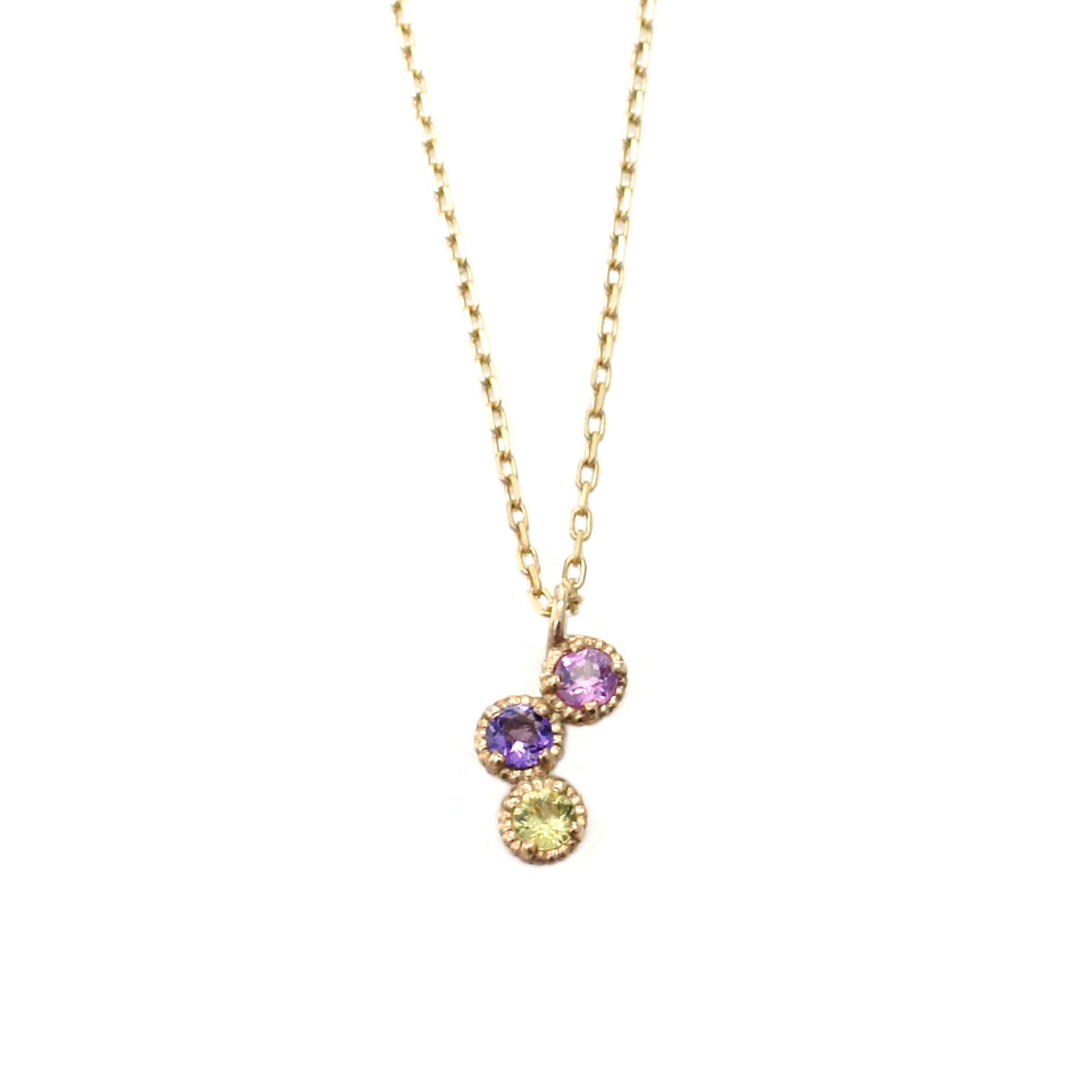小さな宝石が3個連なった、とってもキュートなプチペンダント。