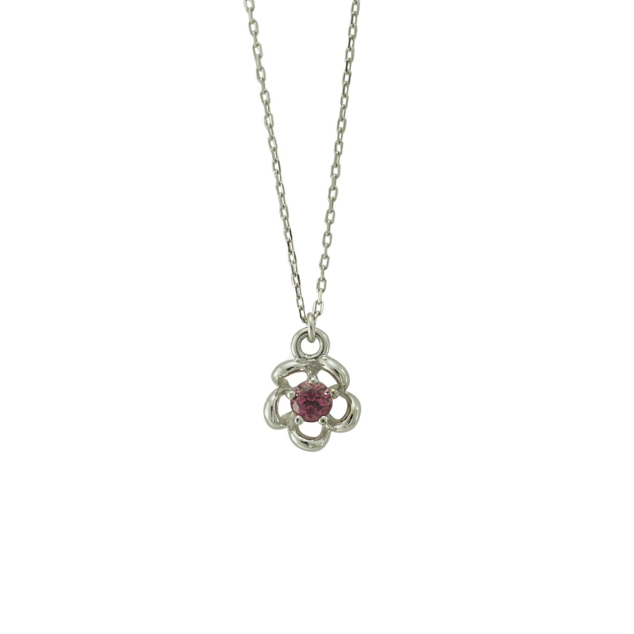 ピンクトルマリンを中心に留めたお花のネックレス。