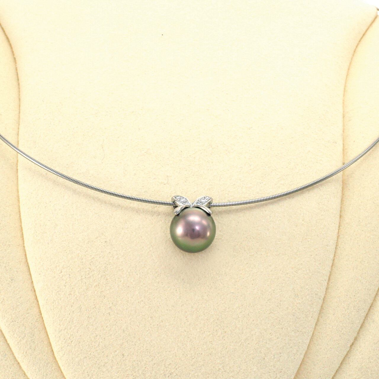 素材:黒蝶真珠10~11ミリ バチカン部分のダイヤモンド6石(0.062ct)