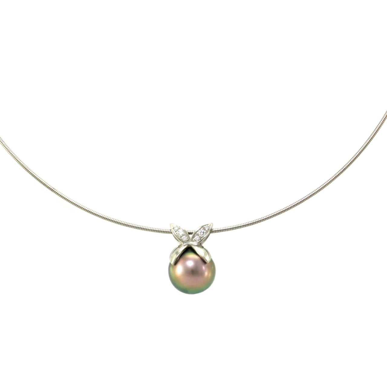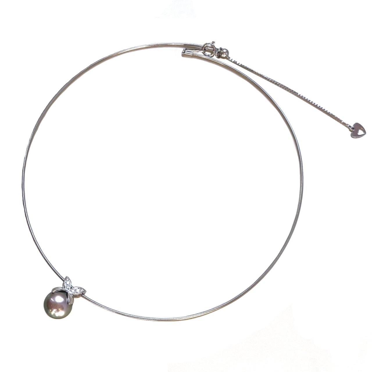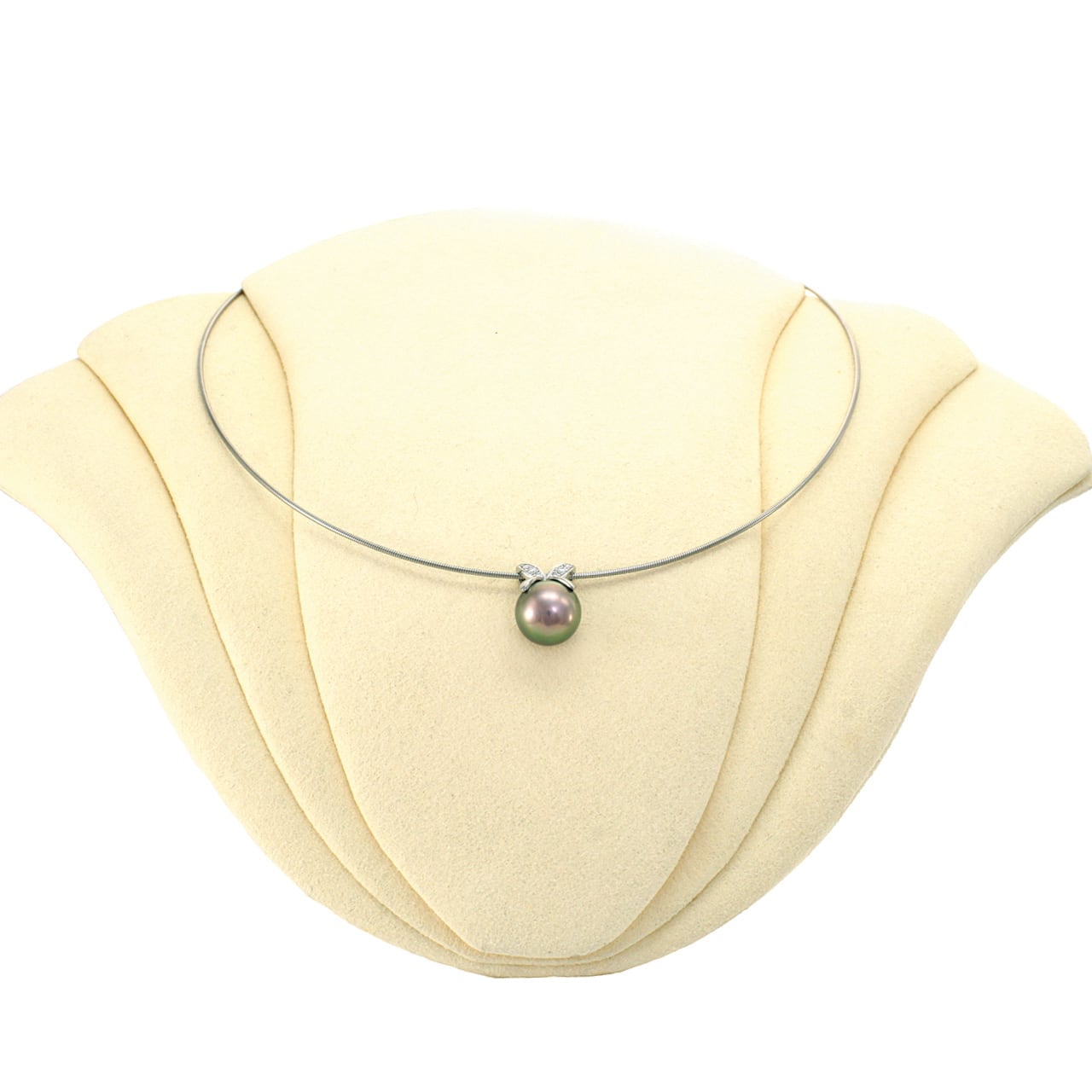 上品でエレガントなプラチナ・黒蝶真珠ペンダント。