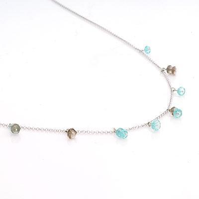 アパタイトの青緑色とスモーキークォーツの深みのある色合いが美しく融合した、上品なネックレス