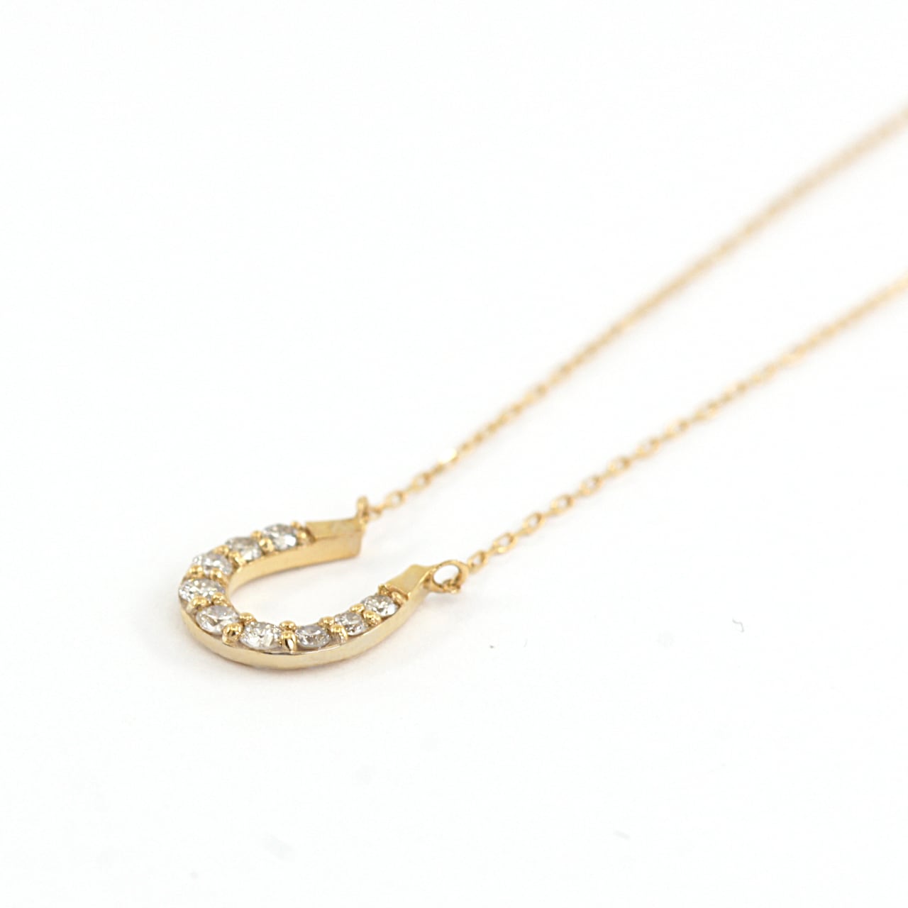 ダイヤモンドが輝く、幸運を呼び込む馬蹄モチーフのペンダント。